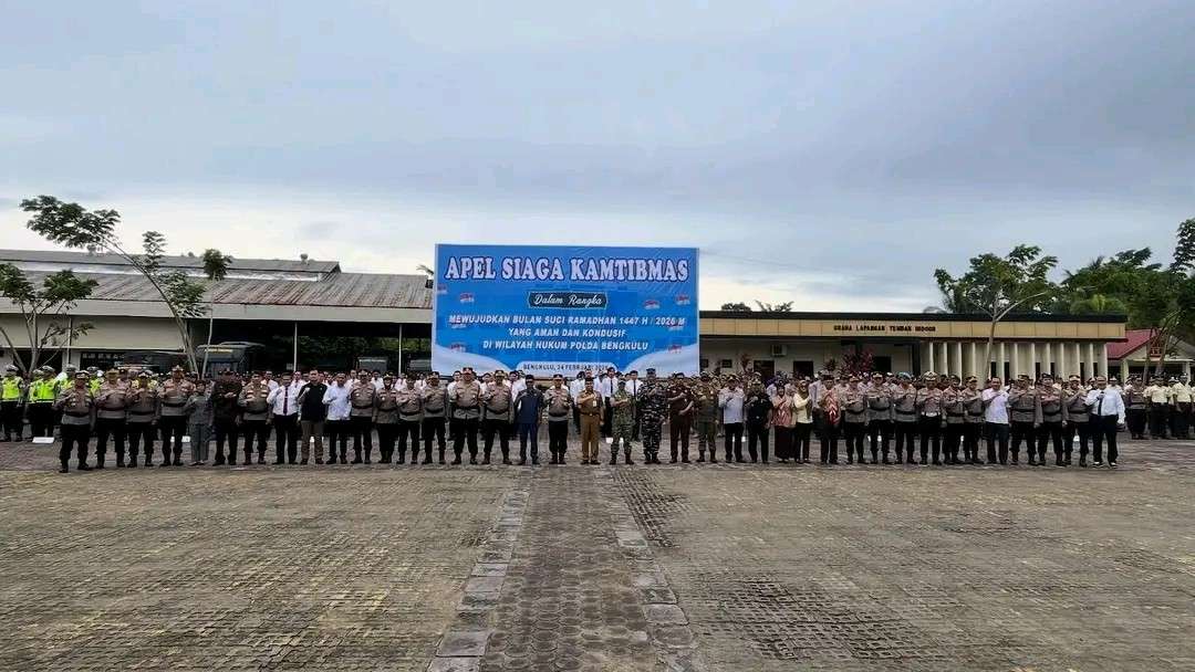 Bengkulu, Jurnalisbengkulu.com – Menyambut Bulan Suci Ramadan 1447 Hijriah/2026 Masehi, Polda Bengkulu memperketat pengamanan di seluruh wilayah hukum. Langkah ini ditandai dengan pelaksanaan Apel Siaga Keamanan dan Ketertiban Masyarakat (Kamtibmas) di Lapangan Anton Soedjarwo, Selasa (24/2).