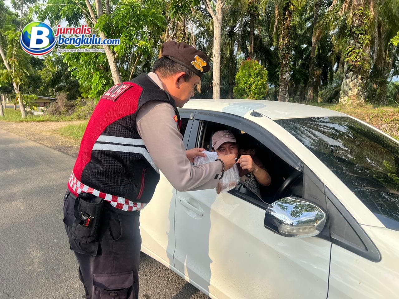 Selain membagikan takjil, Sat Samapta Polres Mukomuko juga memanfaatkan kesempatan tersebut untuk memberikan himbauan kepada masyarakat.