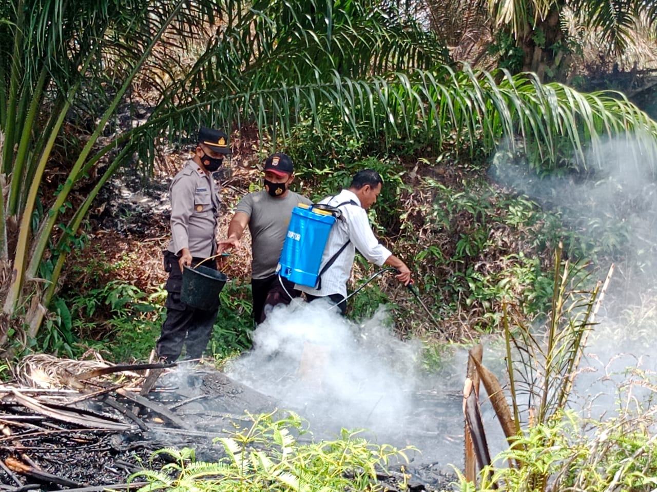 Polsek Lubuk Pinang Bersama Masyarakat Padamkan Hotspot Kebakaran Lahan
