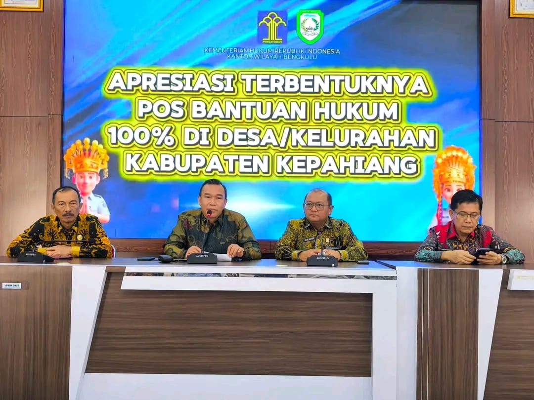 Kepahiang, Jurnalisbengkulu.com-Pemerintah Kabupaten Kepahiang menegaskan komitmennya dalam memperluas layanan hukum bagi masyarakat desa setelah menerima dua penghargaan dari Kementerian Hukum Republik Indonesia melalui Kantor Wilayah Kementerian Hukum Bengkulu.