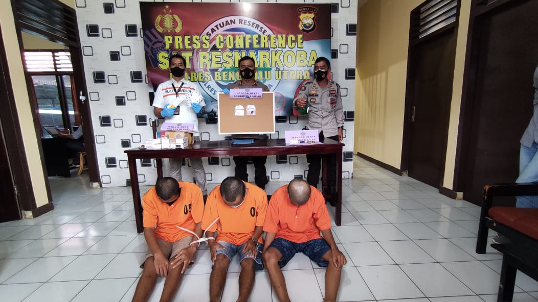 Dilaksanakan dengan mematuhi prokes ditengah penyebaran pandemi covid-19, dalam kesempatan ini Kapolres yang didampingi Kasihumas AKP Darlan dan Kasat Resnarkoba IPTU Rahmat SH, MH., menjelaskan pengungkapan pertama berhasil diungkap pada hari Sabtu (03/07) yang lalu dengan terduga pelaku NRW Alias NV (24) Warga Mukomuko saat berada di Desa Kota Bani Kecamatan Putri Hijau dan barang bukti 1 (satu) paket narkotika jenis shabu.