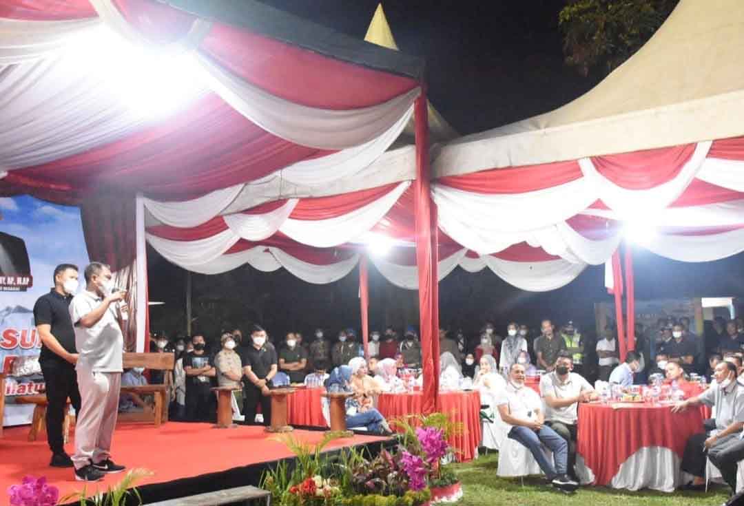 Sergai, jurnalisbengkulu.com – Bupati Serdang Bedagai H. Darma Wijaya didampingi Wakil Bupati (Wabup) H. Adlin Umar Yusri Tambunan, ST., M.S.P bercengkrama saat acara ramah tamah bersama Bupati/Walikota se-Sumut di Mess PTPN III Distrik Serdang I Gunung Pamela, Kecamatan Sipispis, Jumat ( 5/2/2022) malam.