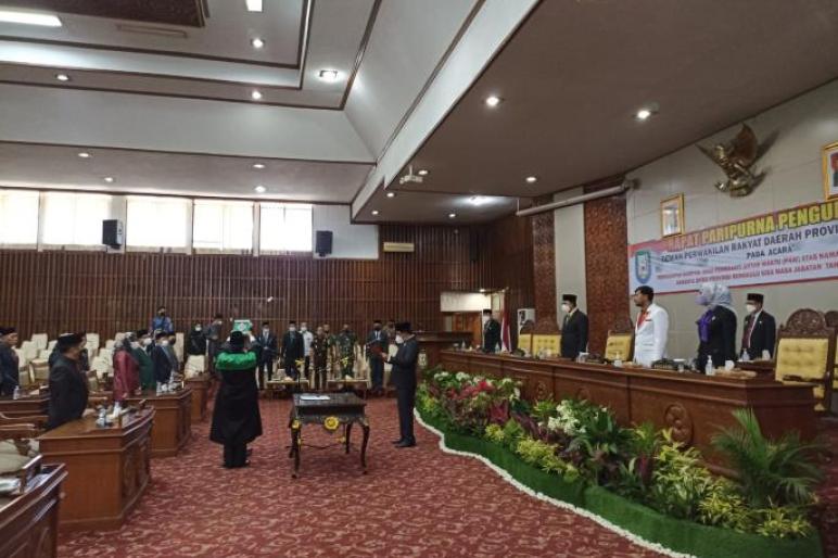 “Dengan selesainya pengambilan sumpah jabatan tadi, maka telah sah pula saudara Raharjo Sudiro sebagai Anggota DPRD Provinsi Bengkulu,masa jabatan 2019-2024,” Ungkap Ihsan