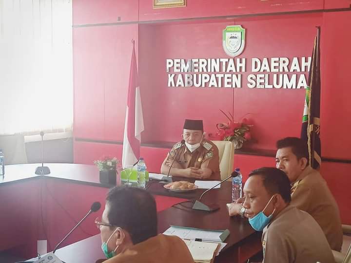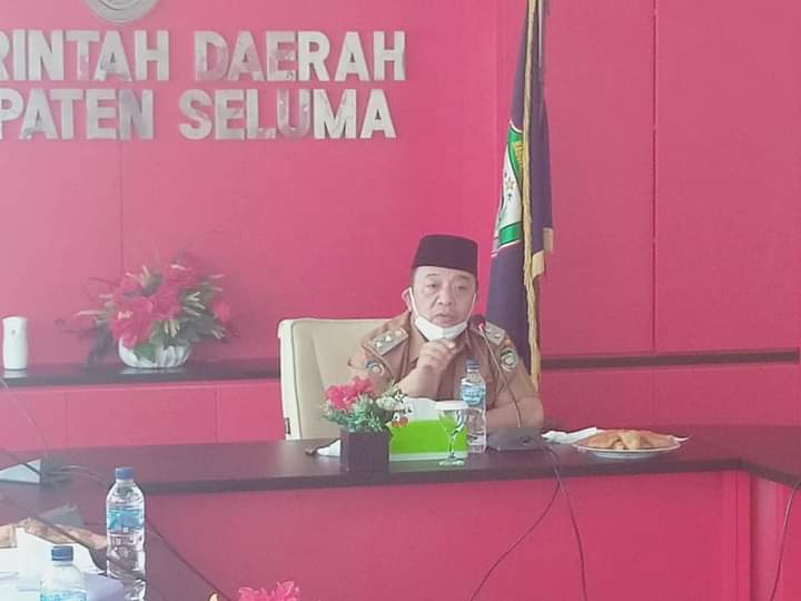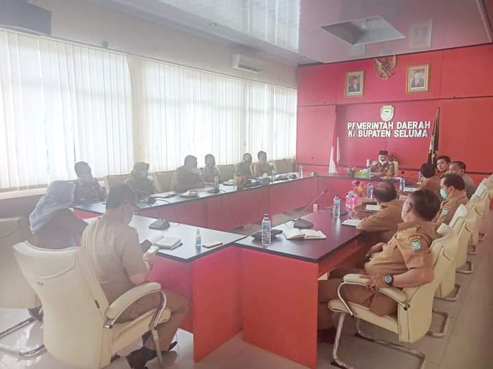 Seluma, JB – Wakil Bupati Seluma Drs. Gustianto memimpin Rapat Koordinasi tentang Surat Edaran Gubernur Bengkulu Nomor 420/164/Dikbud/2021 tanggal 11 Februari 2021 tentang Penyelenggaraan Pembelajaran Tahun Pelajaran 2020/2021 di Masa Pandemi Corona Virus Disease 2019 (COVID-19) di Kabupaten Seluma, Senin ( 1/3/2021) di Ruang Rapat Bupati Seluma.