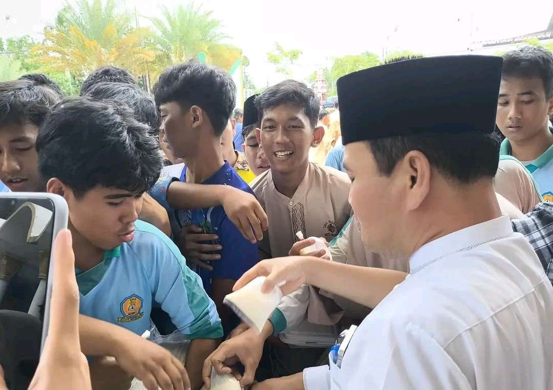 Ratusan Pelajar Bengkulu Gembira Pulang Shalat Jumat Bawa Beras dari Program “Bantu Rakyat