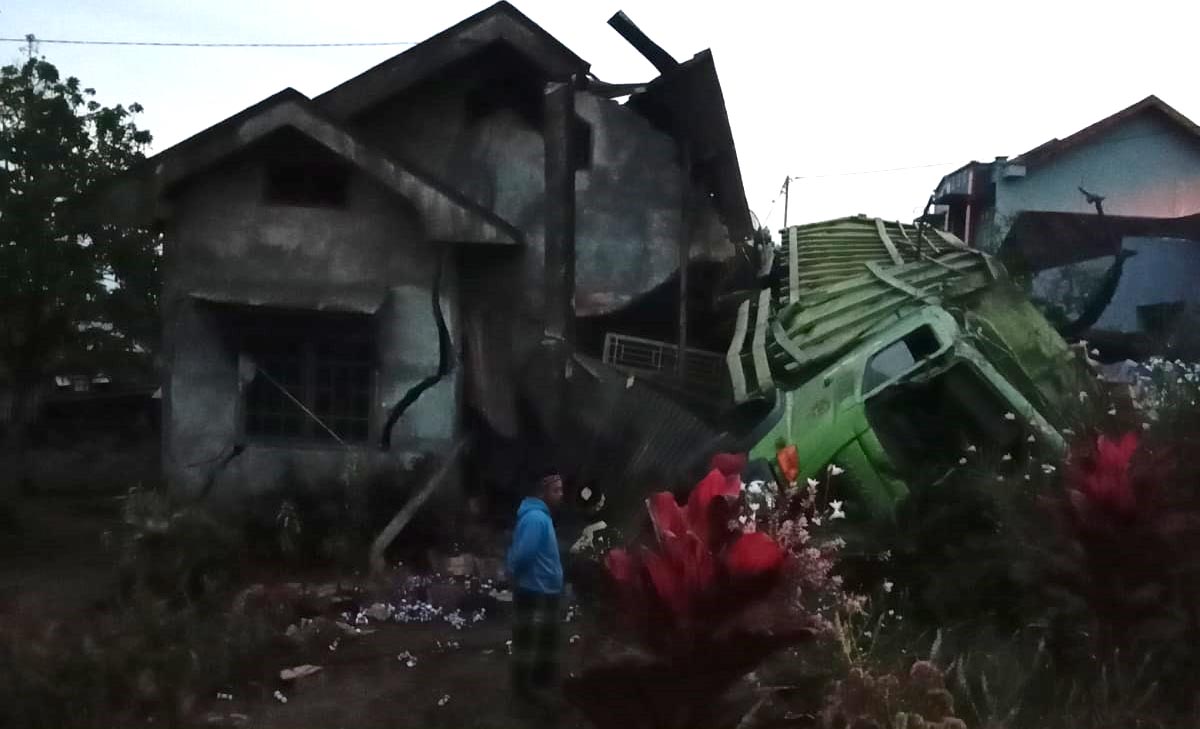 Rem Blong, Truck Hino Bermuatan Minuman Hantam Rumah Warga