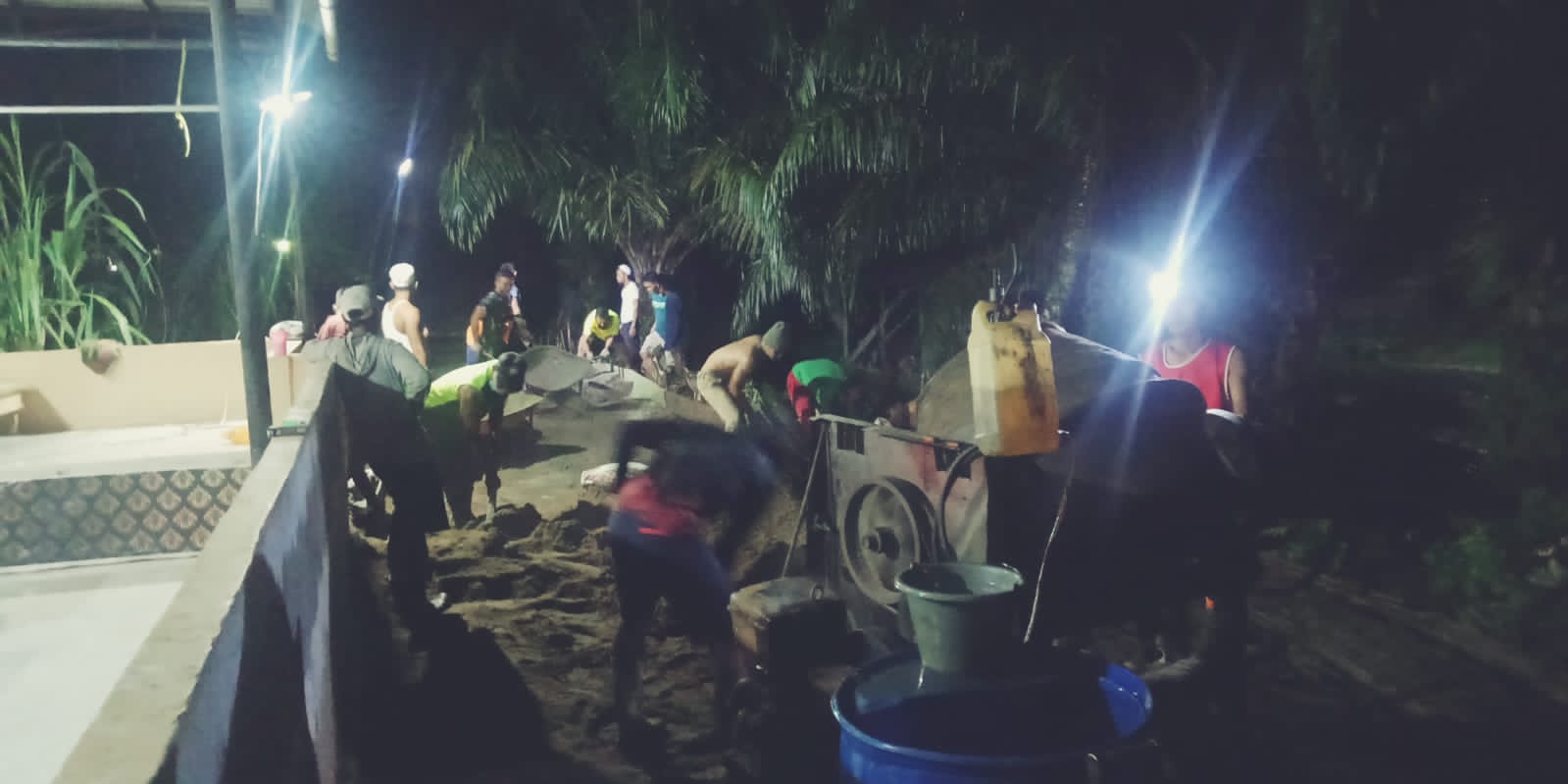 Terlihat personil satgas TMMD bersama masyarakat setempat pun terlihat terus melanjutkan pengerjaan rabat beton jalan yang hanya tinggal beberapa meter saja, personil aatgas TMMD (Serka Matares) menyampaikan, “Ada sasaran fisik tambahan yang harus kita kerjakan mengingat sisa waktu beberpa hari lagi, maka malam ini saya bersama personil satgas TMMD yang menginap di lokasi untuk melanjutkan pengerjaan dibantu dengan masyarakat setempat yang sangat antusias dan bersemangat untuk menyelesaikan pengerjaan rabat beton jalan sampai ke depan” jelasnya.