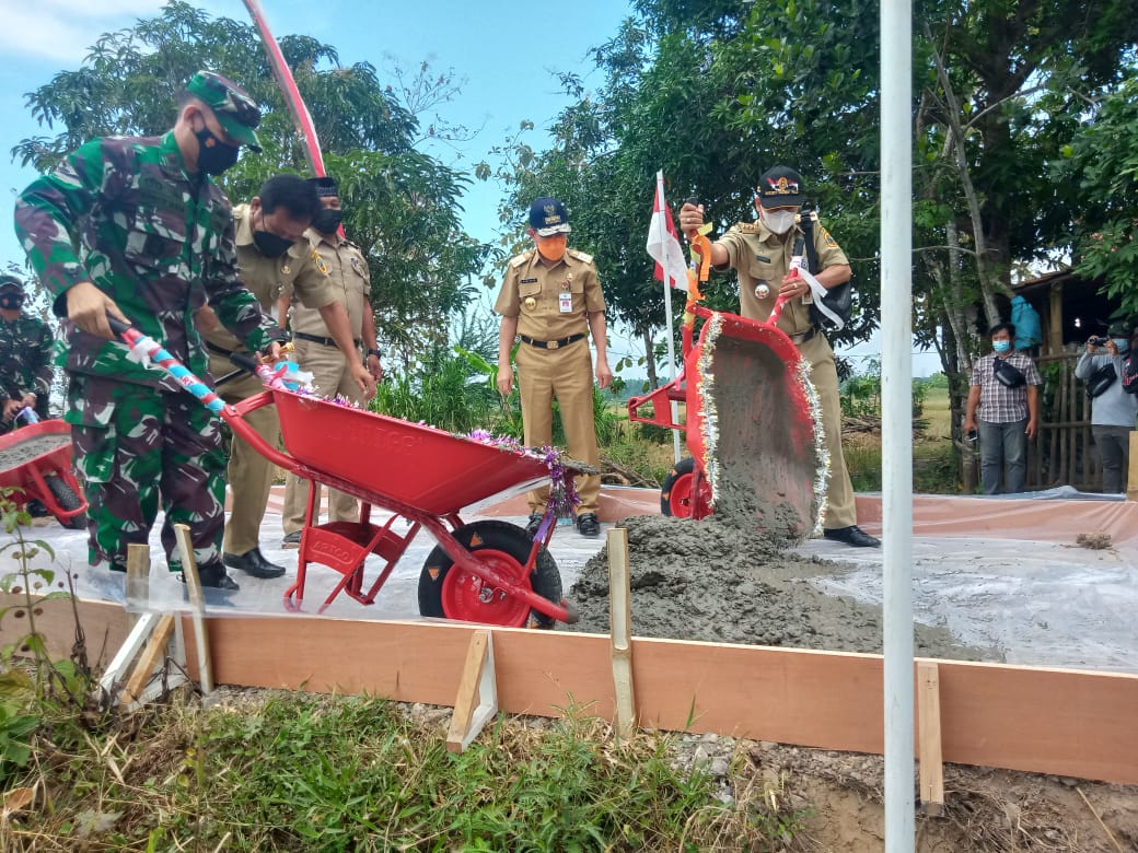 Pati- Kegiatan secara simbolis pagi tadi mengawali kegiatan upacara pembukaan TNI manunggal membangun desa (TMMD) regular 111 Tahun 2021, rombongan forkopimda Pati kompak menuangkan adonan beton di titik nol kilometer.Selasa,(15/06/2021).