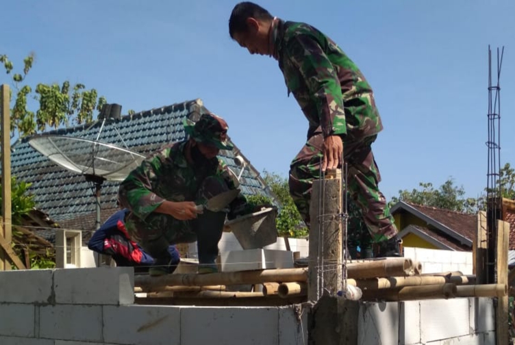 Pati – Sertu Suprapto anggota Koramil 20/Tambakromo saat ini tergabung dalam Satgas TMMD Regular ke-111 Kodim Pati. Dia terlihat paling semangat dan selalu tersenyum saat membantu TNI Satgas lainnya dalam pemasangan hebel dinding salah satu rumah warga yang sedang dibangun melalui program TMMD, Jum’at (11/6/2021).