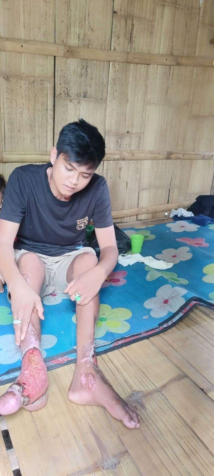 Luka bakar di kaki Anggi belum menunjukkan tanda kesembuhan total, mengakibatkan ia lumpuh secara ekonomi dan kehilangan kemampuan untuk bekerja.