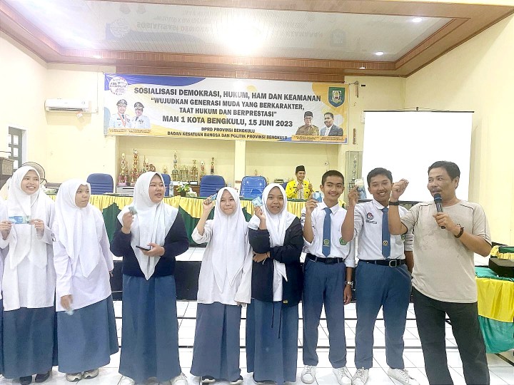 Usai memberikan materi, Usin Sembiring mengucapkan terima kasih kepada Kesbangpol Provinsi Bengkulu, pihak sekolah MAN 1 Kota Bengkulu dan para dewan guru serta siswa yang hadir.