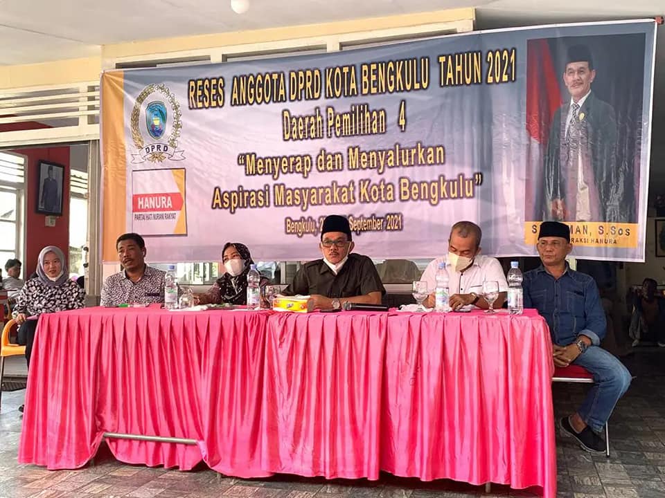 Anggota DPRD Kota Bengkulu dari Daerah Pemilihan IV Kota Bengkulu, Sudisman Sudisman Disman saat reses yang dilaksanakan Minggu siang (26/09) mengatakan masa reses menjadi media bagi anggota dewan untuk menyerap aspirasi, menerima pengaduan dan gagasan-gagasan yang berkembang di daerah pemilihannya.