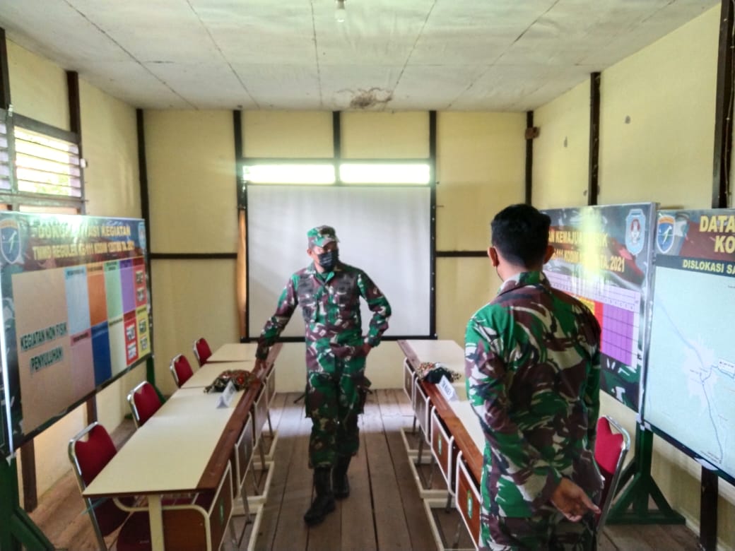 Kubu Raya – TMMD ke-111 Kodim 1207/Pontianak di Dusun Maju Jaya, Desa Kuala Mandor B, Kecamatan Kuala Mandor B, Kabupaten Kubu Raya sudah memasuki minggu keempat. Untuk mengawasi dan mengendalikan kegiatan, sekaligus sebagai sumber informasi kegiatan dan kemajuan pembangunan yang menjadi progres kegiatan TMMD keberadaan posko menjadi sangat penting, sehingga Dandim 1207/Pontianak (Kolonel Inf Jajang Kurniawan, S.I.P., M.M.) sebagai Dansatgas TMMD mengadakan pengecekan posko TMMD ke-111, Jumat (09/07/2021).