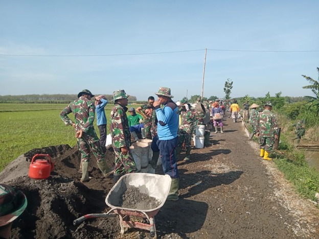 “Memasuki 65 persen pengecoran jalan, banyak hal yang perlu dikoordinasikan. Termasuk setelah pengecoran jalan sampai di titik, akhir langkah apa yang akan diambil selanjutnya,” jelas Babinsa Jaken Sertu Jumroni.