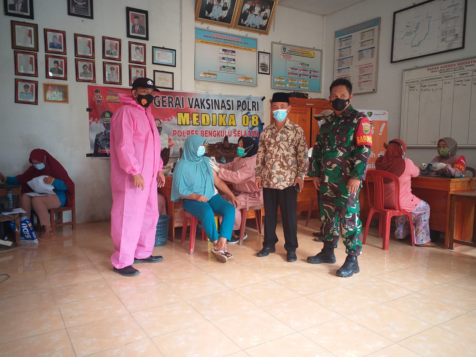 BENGKULU SELATAN, jurnalisbengkulu.com – Mendukung penuh kegiatan program yang menjadi kebijakan pemerintah dalam rangka pencegahan dan penanggulangan pandemi covid-19, Polres Bengkulu Selatan Polda Bengkulu gelar kegiatan Vaksin Masuk Desa.