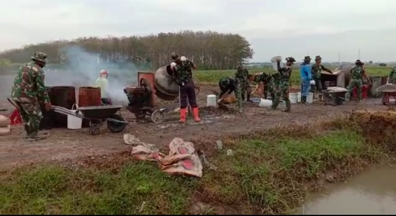 Pati-Dalam program TMMD Reguler 111 Kodim Pati tahun 2021dengan sasaran pokok Betonisasi Jalan Desa Tamansari sepanjang 1450 meter merupakan jalan penghubung antar desa.