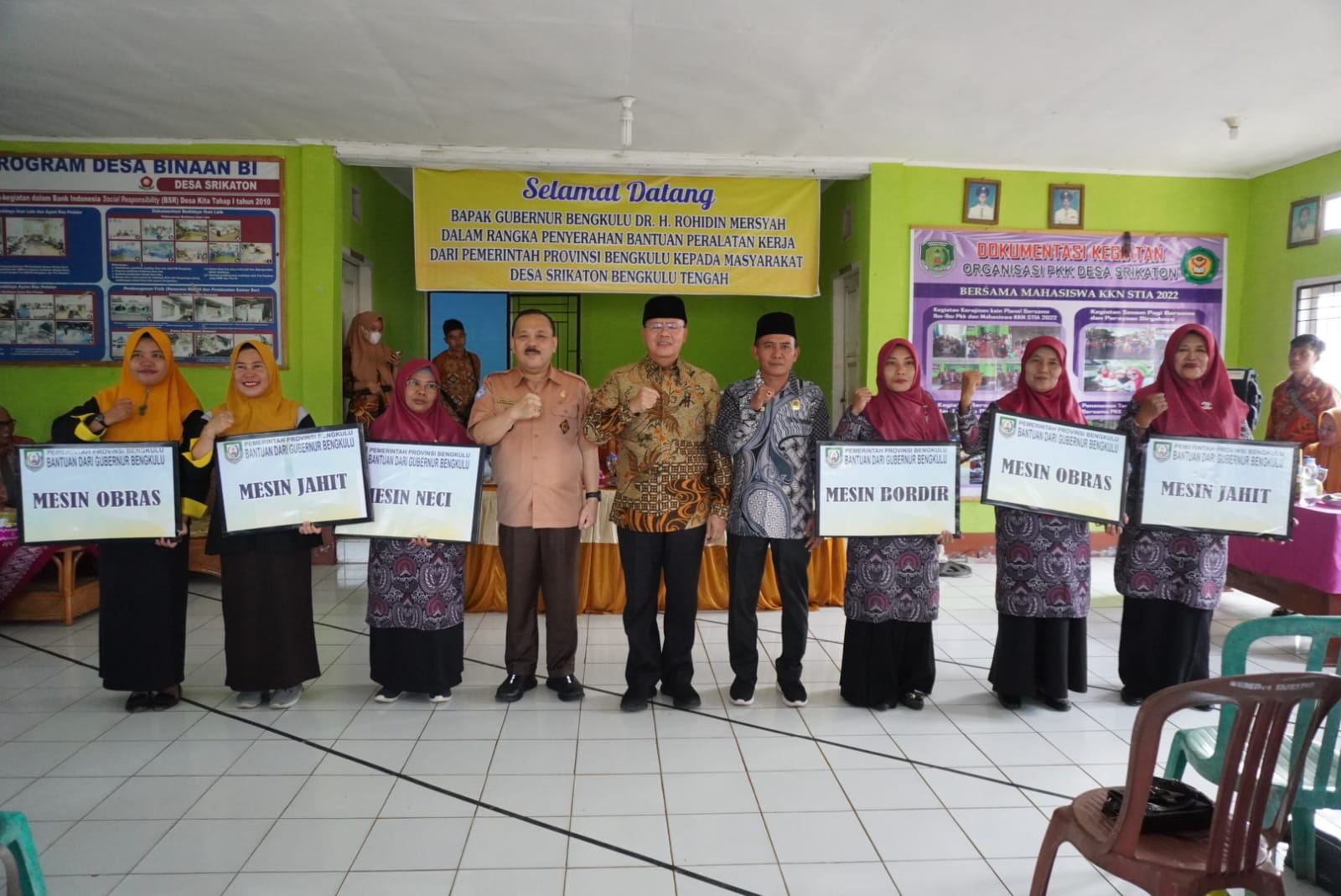 Kali ini penyerahan bantuan peralatan kerja yang disampaikan langsung oleh Gubernur Bengkulu Rohidin Mersyah kepada Kelompok Usaha PKK Desa Srikaton Kabupaten Bengkulu Tengah berupa 13 unit mesin jahit, di Balai Desa Srikaton Kecamatan Pondok Kelapa Kabupaten Bengkulu Tengah, Kamis (14/09).
