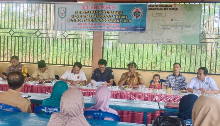 Kepahiang, jurnalisbengkulu.com – Pemerintah Desa Talang Babatan Kecamatan Seberang Musi Kabupaten Kepahiang mengelar Musyawarah Desa Khusus dengan agenda validasi dan finalisasi penetapan calon penerima BLT-DD tahun 2023, Selasa (21/02/2023) di Balai Desa Talang Babatan.