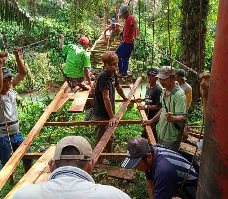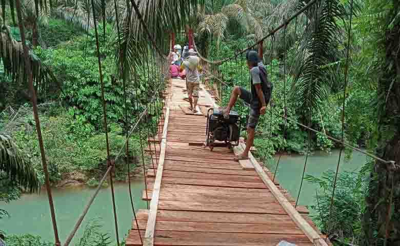 Seluma, jurnalisbengkulu.com – Warga Desa Gunung Mesir Kecamatan Semidang Alas Kabupaten Seluma patut diacungi jempol. Pasalnya mereka sangat kompak dan saling bahu membahu bergotong royong membangun rabat beton dan merehabilitasi lantai jembatan gantung sebagai akses penyeberangan sungai di Desa Gunung Mesir menuju akses sentra pertanian masyarakat.