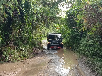 Akibatnya, kendaraan yang melintas harus keluar dari badan jalan, sementara kendaraan yang bermuatan berat tidak dapat melintasi jalan tersebut.