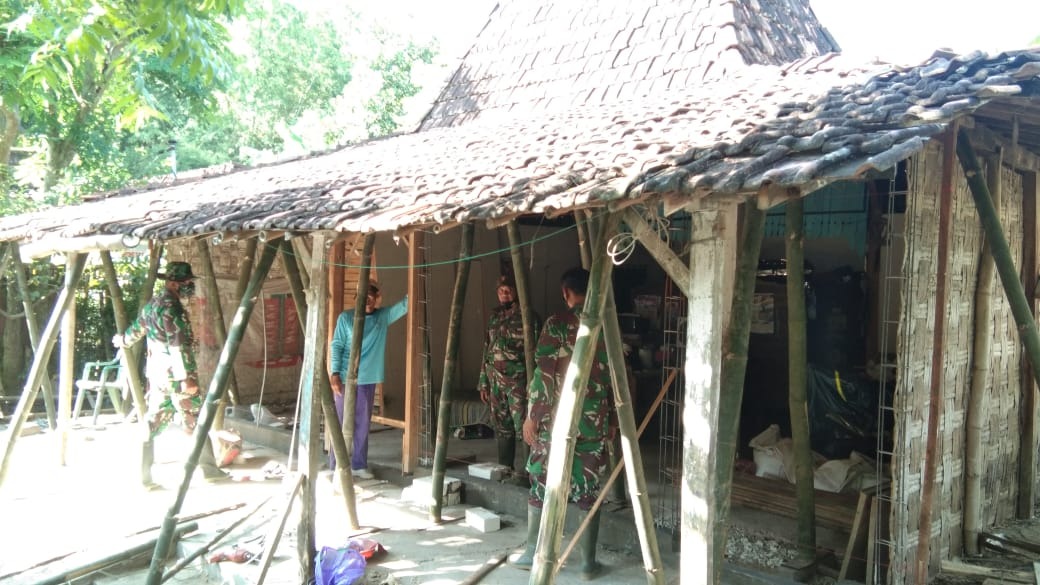 Dibawah terik matahari mereka masih tetap semangat dalam pengerjaan proses pembongkaran rumah milik Bapak Syukur . Wes Wayahe Membongkar Barang Seng Olo Mbangun Barang Seng Apik (Sudah Saatnya Bongkar Sesuatu yang Jelek atau kurang pantas di ganti dengan sesuatu yang baik) Tutur “sertu Puryono” saat di tengah tengah pemugaran rumah milik Bapak Syukur . Mereka dengan lihai dan trampil dalam melakukan kegiatan pemugaran ini di karenakan terjalin kerjasama yang baik antara TNI dan masyarakat.