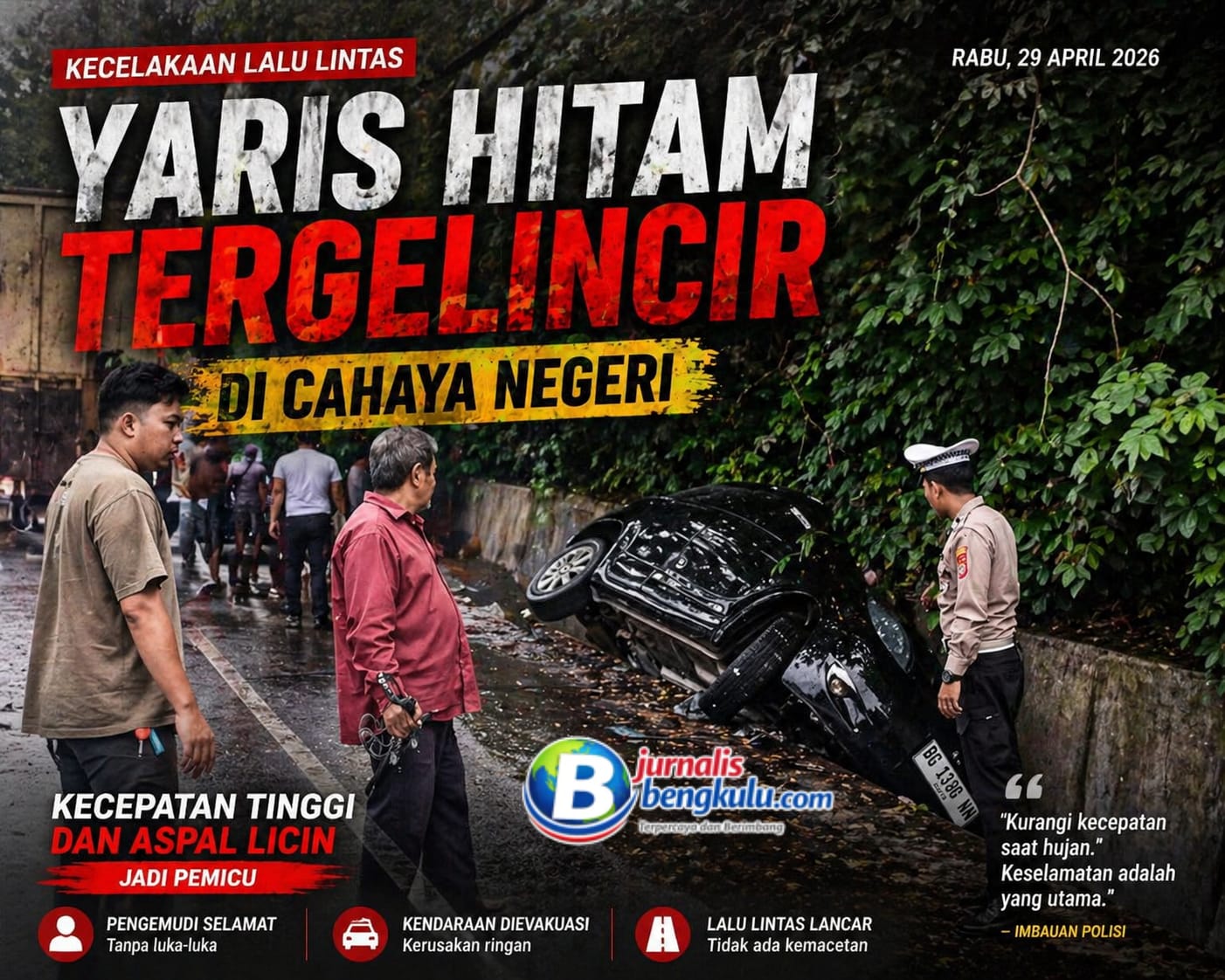 “Keselamatan adalah yang utama. Kami mengimbau masyarakat untuk mengurangi kecepatan, terutama saat hujan atau jalan licin. Pastikan kendaraan dalam kondisi prima dan selalu patuhi rambu lalu lintas,” tegas petugas di lokasi.